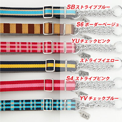メタルのパーツが特徴的なブランド「メタル・ビードッグ」からハーフチェーンカラーが新登場!カジュアルな素材とメタルの組み合わせがGoodです!バリエーションYU チェックピンクYV チェックブルーSB ストライプブルーS4 ストライプピンクS5 ストライプイエローS6 ボーダーベージュサイズサイズ適応体重(目安)首まわり最大頭まわり素材幅重量 SS 5kgまでの超小型犬約23〜30cm約34cmまで15mm約46g S 10kgまでの小型犬約27〜40cm約44cmまで15mm約61g M 20kgまでの中型犬約35〜53cm約59cmまで19mm約90g★
