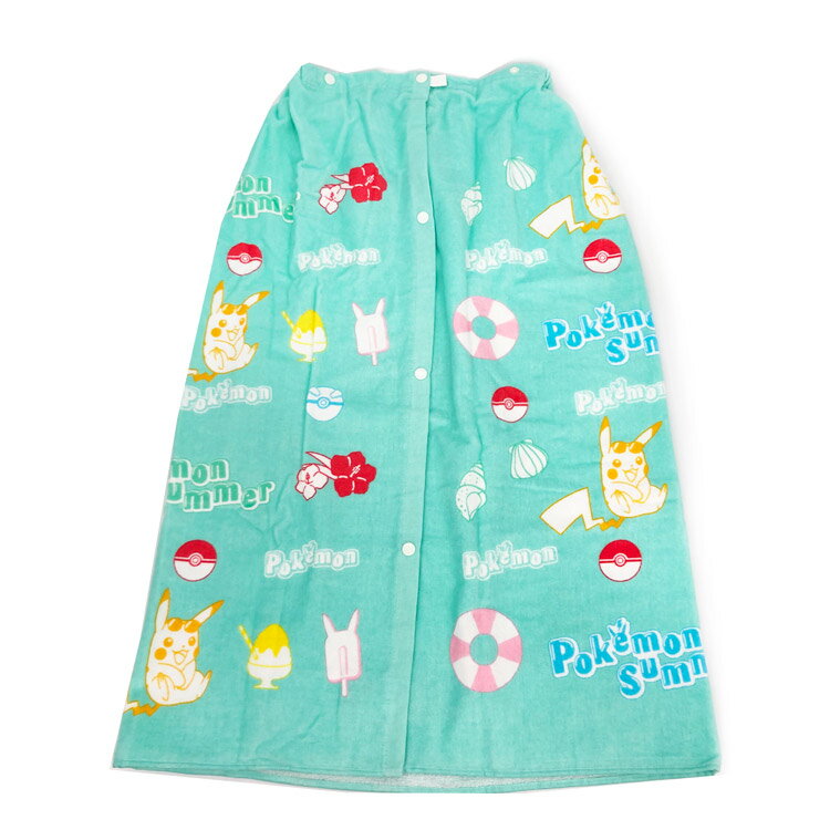 ポケモン〕 子供から大人まで大人気のポケットモンスターから、Lサイズのスナップ付き巻きタオルが登場です!! お風呂上がりにはもちろん、プールやスイミング、海のときのお着替えに使えるよ☆